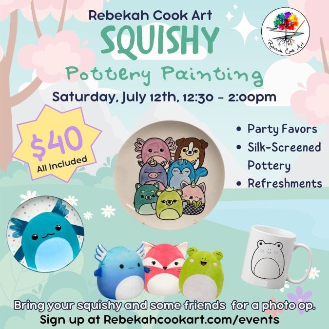 Don’t miss our Children’s Squishmallow Pottery Painting on Saturday July 12th or Paint & Sip Night on Friday July 18th