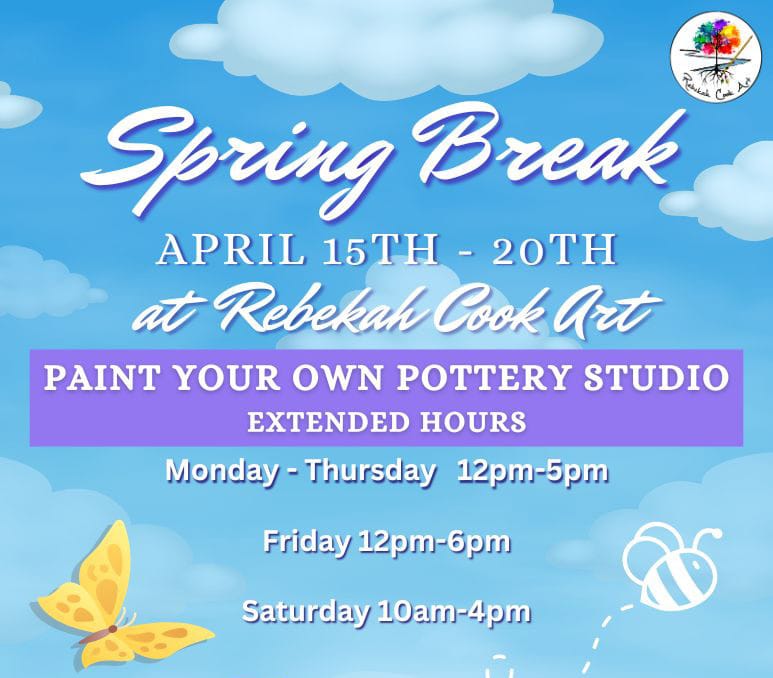 We will have special hours in the Paint Your Own Pottery Studio during the upcoming Spring Break.